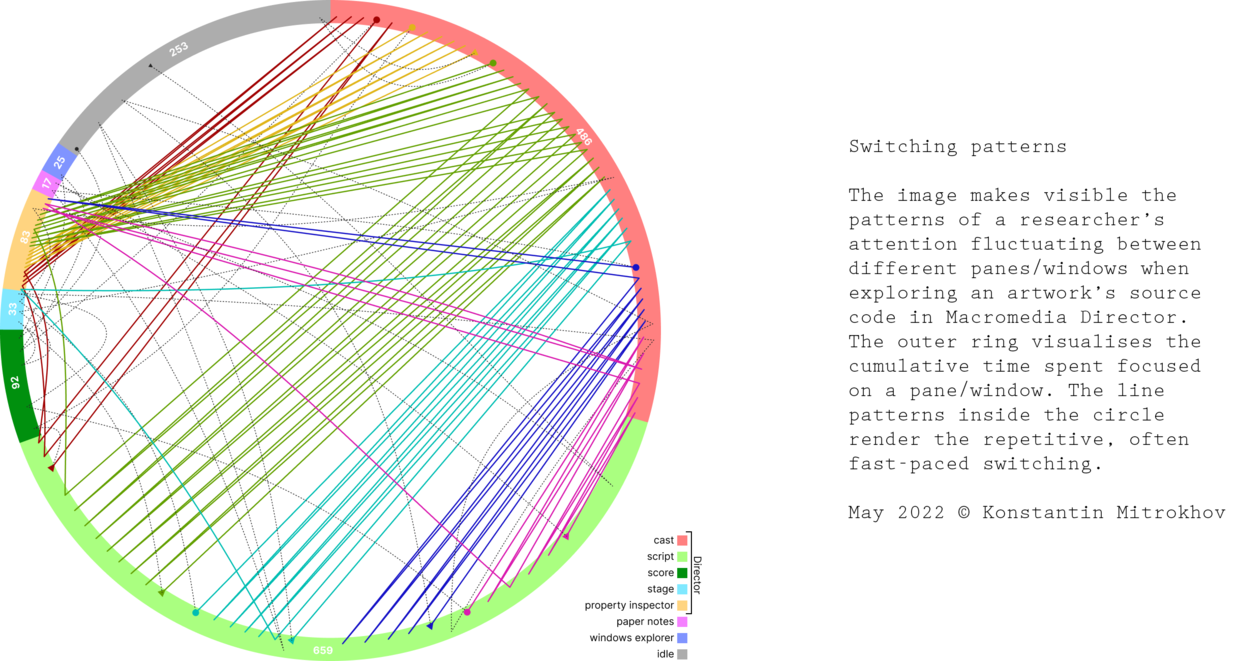 Die besondere Konstellation der Forschungsgruppe machte es möglich, dass drei Teammitglieder (Inge Hinterwaldner, Daniela Hönigsberg, Konstantin Mitrokhov) mit der Erstellung von Visualisierungen zu unterschiedlichen Zwecken beschäftigt waren. Nach zwei Jahren, Ende 2021, haben wir alle verschiedenen Arten von Visualisierungen, die wir im Laufe unserer Grundlagenforschung entwickelt hatten, zusammengetragen und sie kritisch im Hinblick auf die beabsichtigten Ziele und/oder die erzielten Ergebnisse analysiert. Unsere verschiedenen Visualisierungstypen hatten unterschiedliche Funktionen: konzeptionell, heuristisch, epistemisch, kommunikativ. Sie hatten unterschiedliche Zielsetzungen: Einige dienten dazu, sich Klarheit über die allgemeine Funktionsweise von Browsern zu verschaffen, andere wurden durchgeführt, um offene Fragen zu einem bestimmten Browser zu klären usw. Es ist immer noch schwierig zu erkennen, wie und wo genau sich all diese Visualisierungen konzeptionell "treffen". Daraus lassen sich mehrere Schlüsse ziehen: a) In vielen Fällen sind Visualisierungen hilfreich oder sogar unverzichtbar, wenn es um komplexe Systeme geht. b) Eine "große einheitliche Visualisierung" ist illusorisch. c) Netzwerkdiagramme und Wissensgraphen reichen nicht aus, um unseren Zweck zu erfüllen. Es gibt also noch viel herausfordernde und faszinierende Aufgaben zu tun. Schauen Sie mal wieder rein, um mehr über unsere Aktualisierungen zu erfahren!
